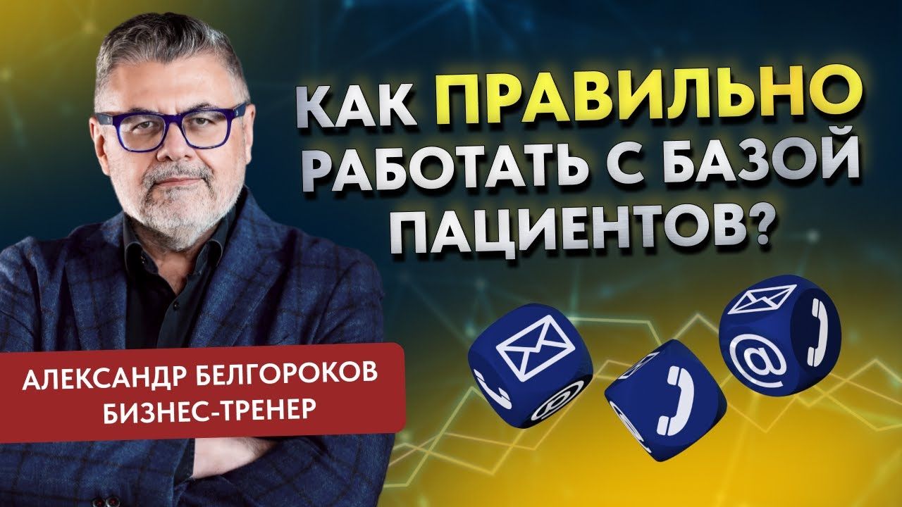 Бизнес-тренер Александр Белгороков – о том, как правильно работать с базой пациентов. “Не надо тратить ни рубля на рекламу до тех пор, пока вы не начали работать с базой данных – со своими существующими пациентами”.